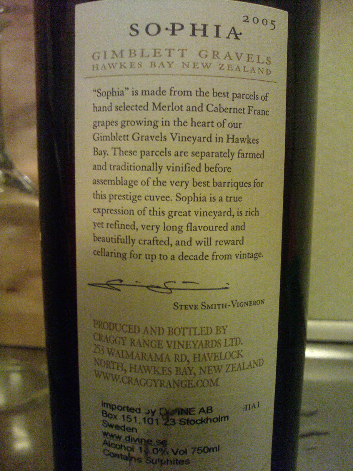 TN : Craggy Range Sophia 2005, Gimblett Gravels, Hawkes Bay, New Zealand