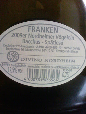 TN : Franconia Bacchus 2009 Nordheimer Voegelein Spaetlese, Divino Nordheim, Franken, Germany